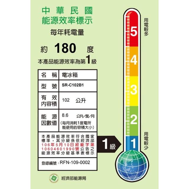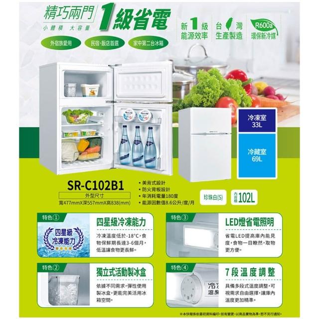 SANLUX 台灣三洋 102公升 一級能效雙門定頻冰箱 SR-C102B1