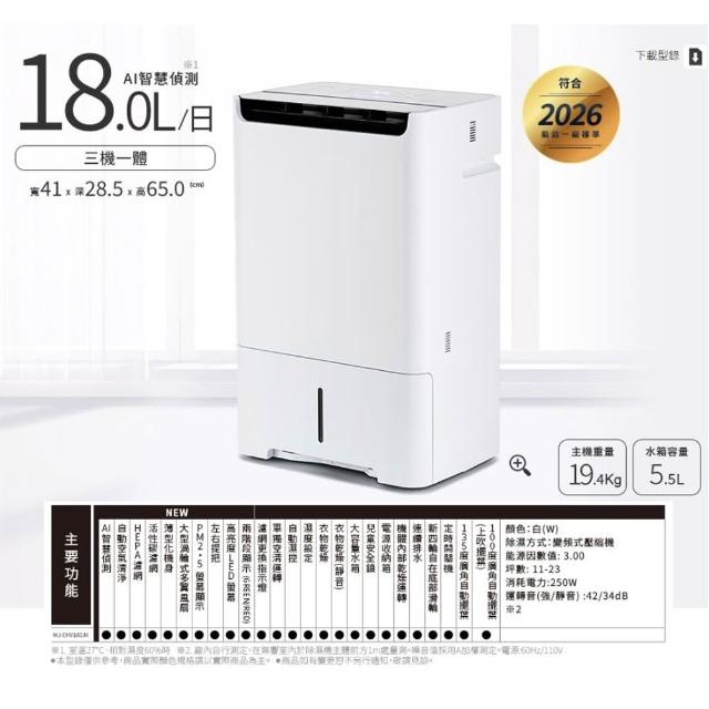 MITSUBISHI 三菱電機 18L 日本製一級能效變頻空氣清淨型除濕機 MJ-EHV180JX-TW