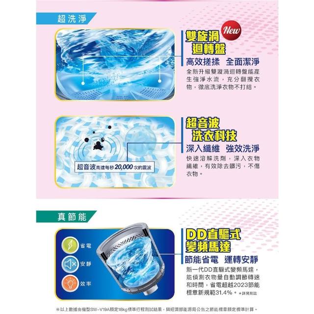 SANLUX 台灣三洋SANLUX 台灣三洋 18公斤 DD直流變頻超音波洗衣機 SW-V19A-N
