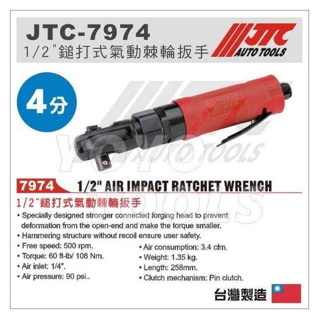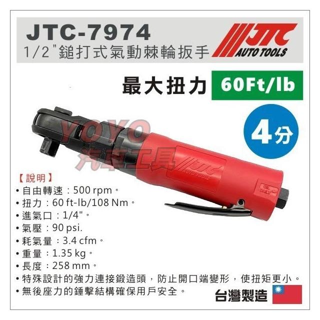 現貨【YOYO汽車工具】JTC-7974 1/2" 鎚打式氣動棘輪扳手 4分 四分 90度 氣動 棘輪 扳手 板手