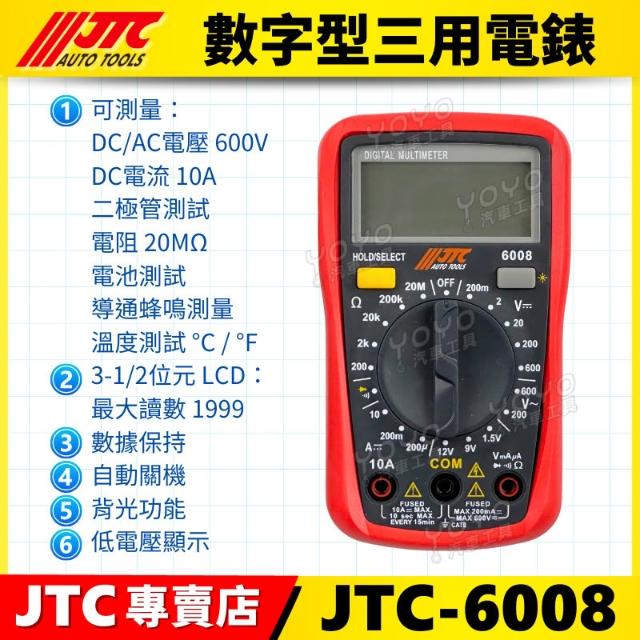 現貨【YOYO汽車工具】JTC 6008 數字型三用電錶 電子式 數位 萬用電表 萬用表 電壓表 三用電表 插座 驗電筆