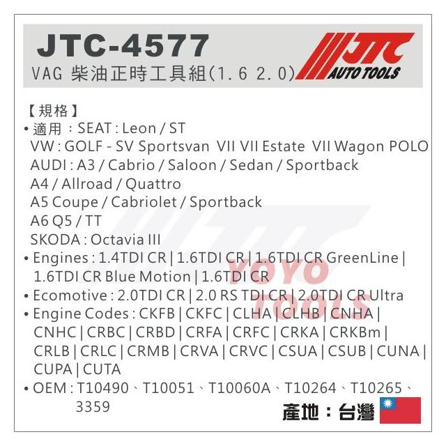JTC 4577 VW AUDI SKODA 柴油 正時工具組 1.6 2.0 TDI T10051