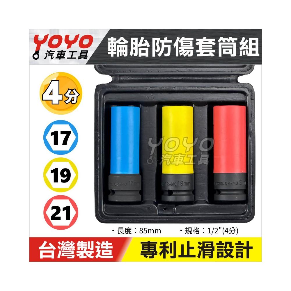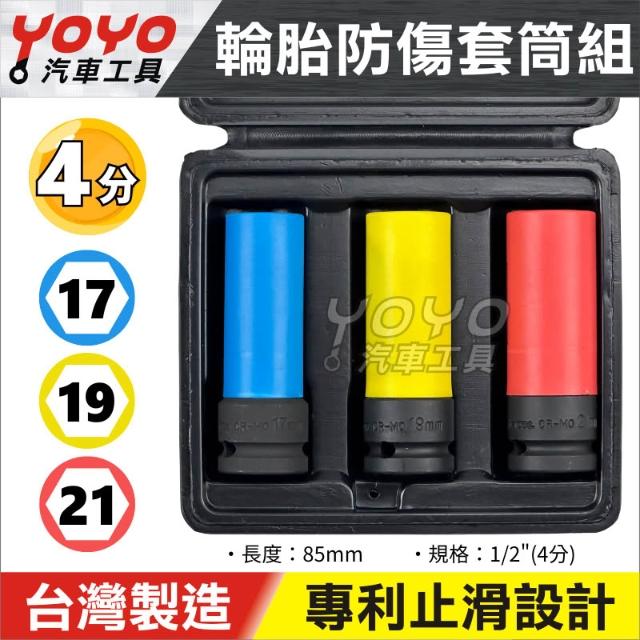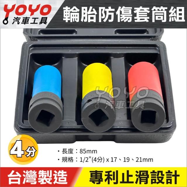 四分輪胎套筒 三件組 4分(1/2") 17mm 19mm 21mm 三齒面 輪胎 防傷套筒 台灣製