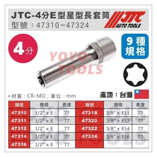 JTC-47310 1/2" E型星型長套筒 E10 / 4分 四分 星形 E型 套筒 長套筒
