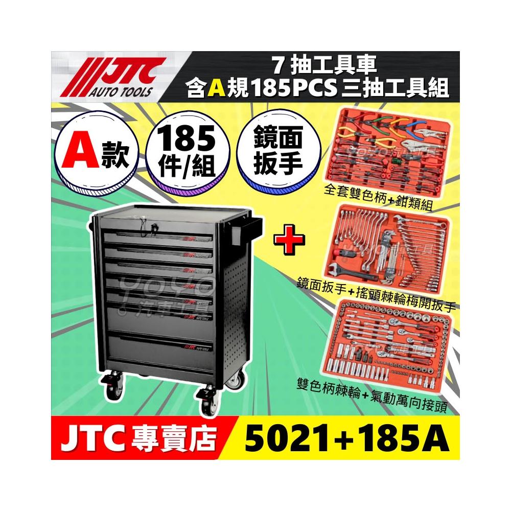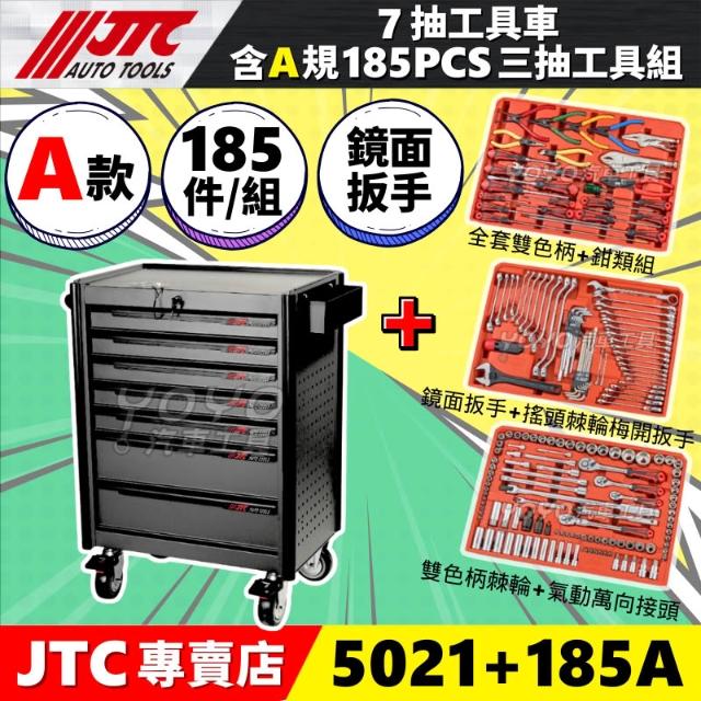 JTC 5021+185A 7抽工具車+185PCS A規 三抽 工具組 鏡面 七抽 工具車 套筒組