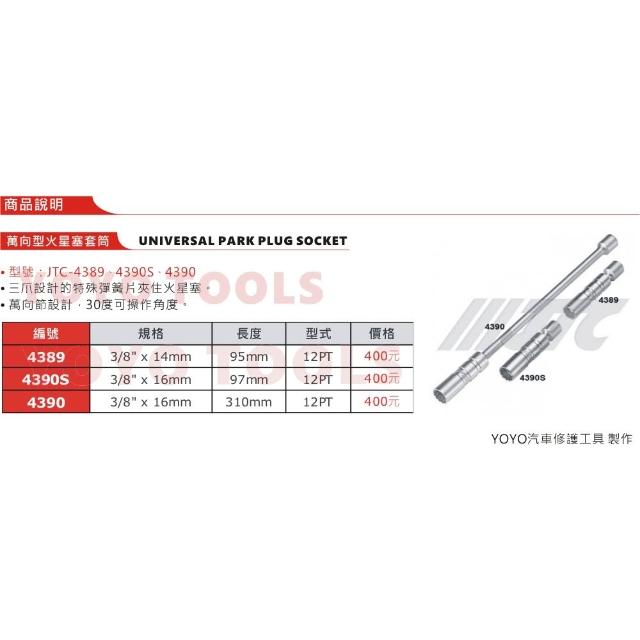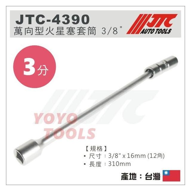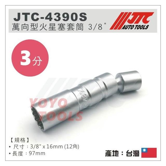 JTC 4390 4390S 3/8" 萬向 火星塞套筒 3分 14 16 mm 12角