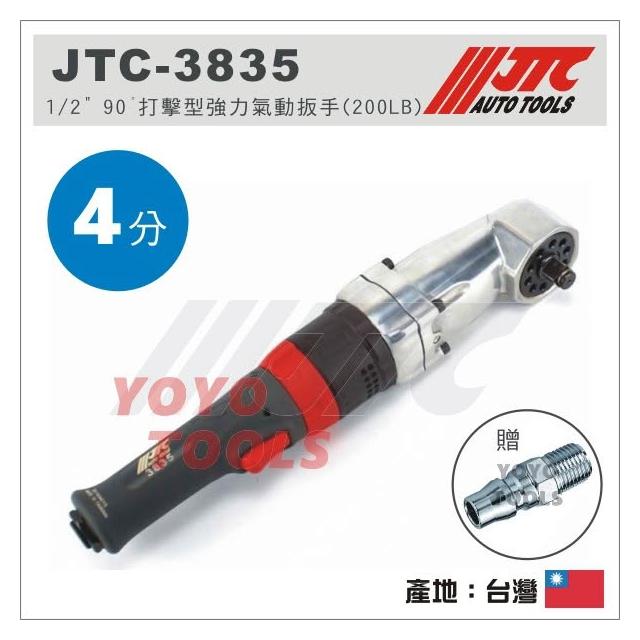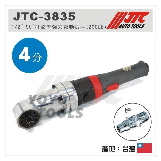 附發票【YOYO汽車工具】JTC-3835 1/2" 90°打擊型強力氣動扳手 200LB 4分 四分 90度 氣動板手