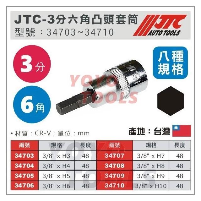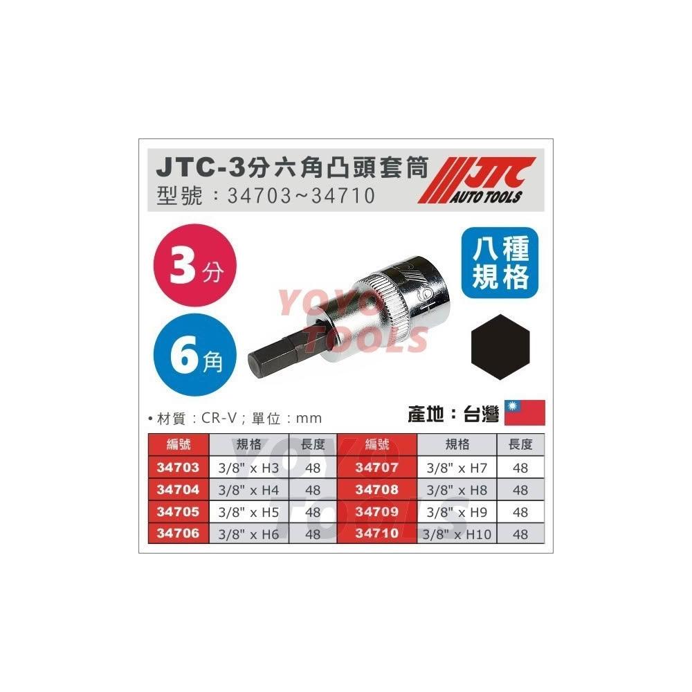 JTC 3分 三分6角 內 六角 凸 套筒 3/8" H4 H5 H6 H7 H8 H9 H10