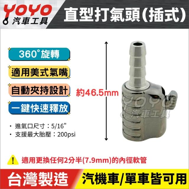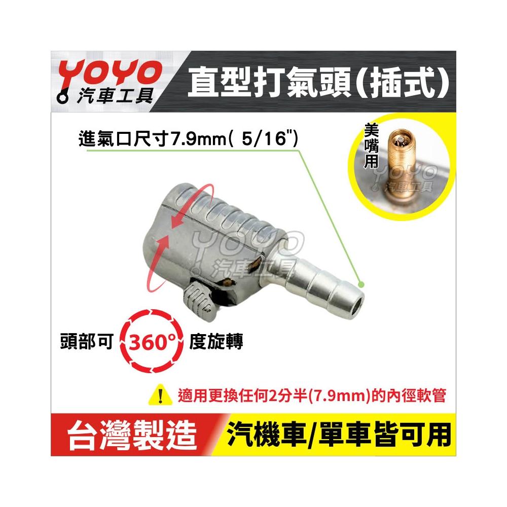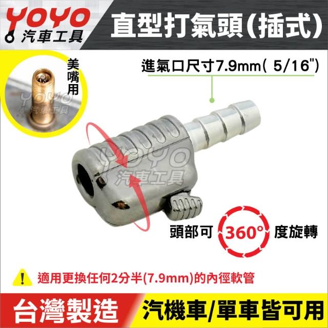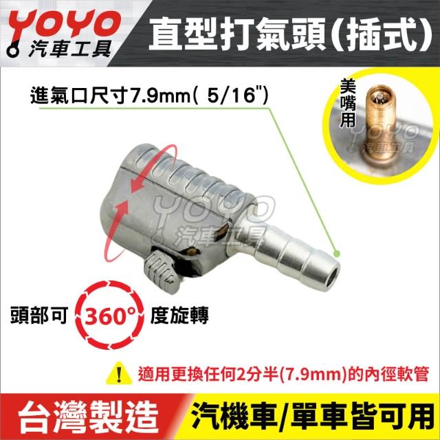 直型 打氣頭 插式 打氣嘴 充氣頭/搭配內徑 5/16" 風管 軟管 空氣管/適用 輪胎 美式 氣嘴