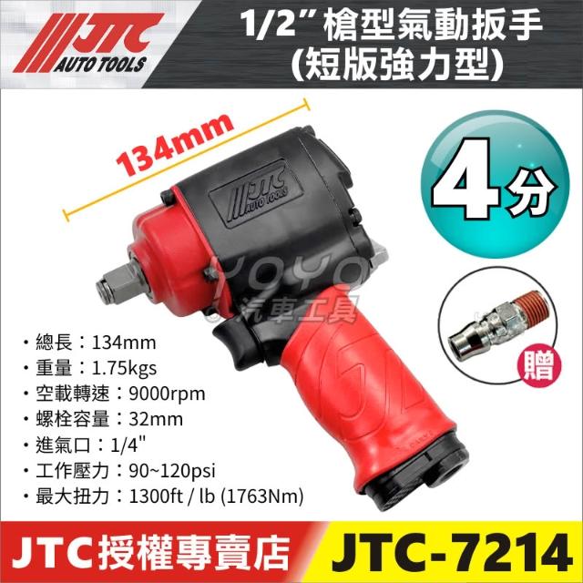 扭力大輕量推薦!【YOYO汽車工具】JTC 7214 1/2" 槍型氣動扳手 強力型 4分 四分 槍型 氣動 扳手 板手