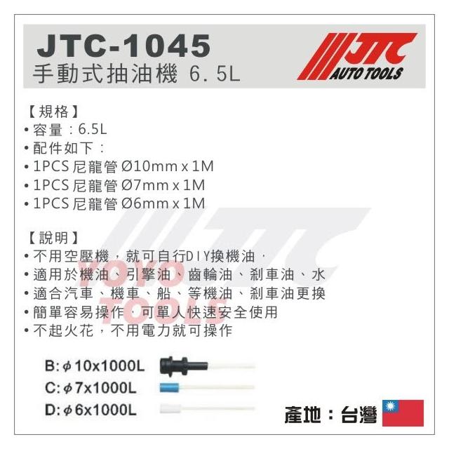現貨【YOYO汽車工具】JTC-1045 手動式抽油機 6.5L 手動 吸油機 引擎 機油 變速箱 煞車油 齒輪油