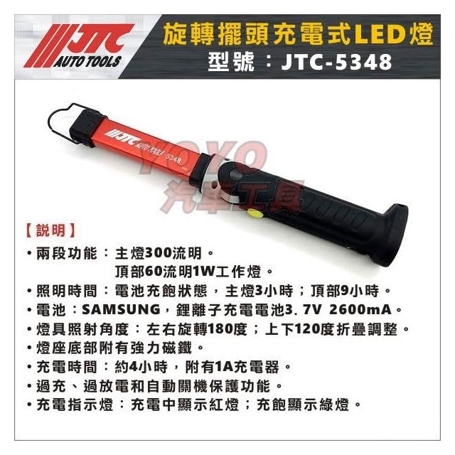 YOYO汽車工具JTC-5348 旋轉擺頭充電工作燈 修車 燈 LED 磁鐵 萬向 工作燈 USB充電