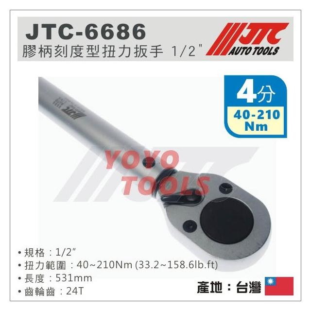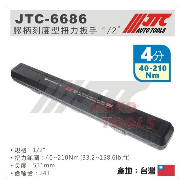 JTC 6686 1/2" 膠柄刻度型扭力板手 40-210Nm 4分 四分 刻度 扭力 扳手 板手