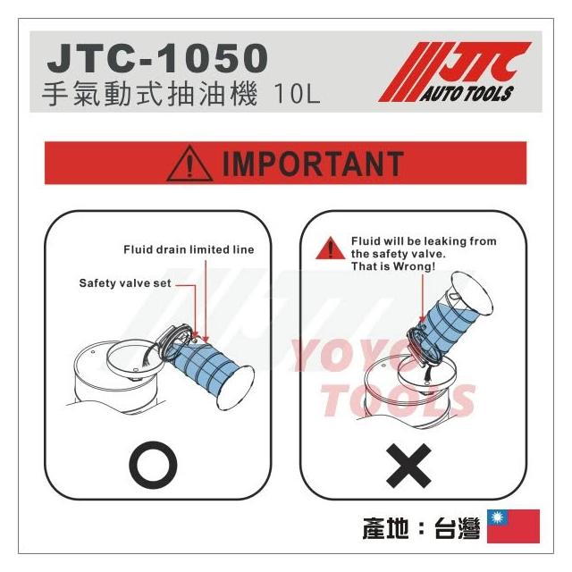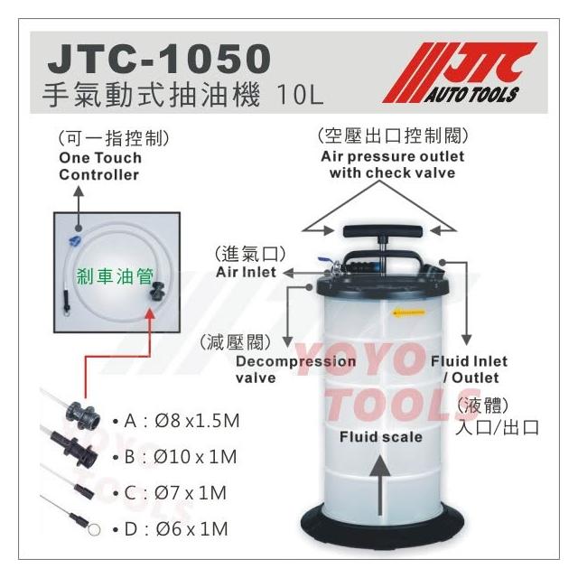免運現貨【YOYO汽車工具】JTC-1050 手氣動式抽油機 10L 剎車油吸取機 手動 氣動 複合式吸油機 抽油機