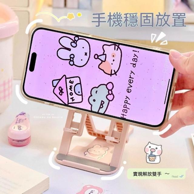 可愛桌面手機支架通用摺疊便攜直播看電視多功能追劇升降支架平板