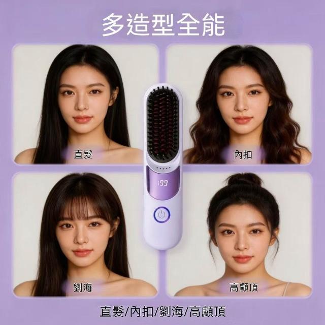 無線直髮梳負離子 便攜懶人造型梳 直髮內扣劉海神器