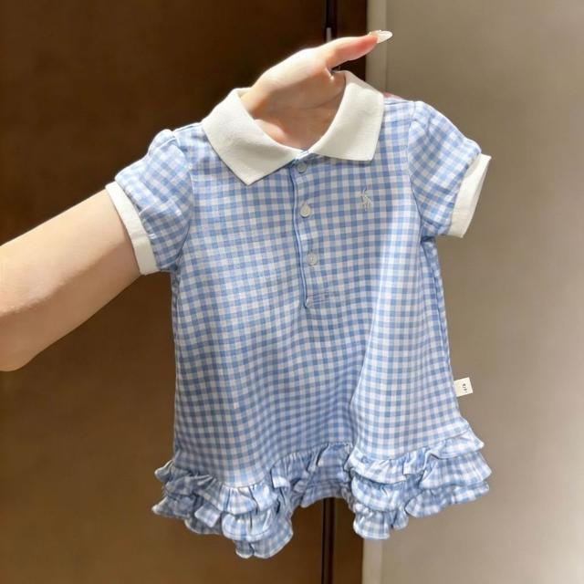 夏季新款韓版兒童女孩寶寶格子連衣裙短袖T恤polo衫花邊公主裙子
