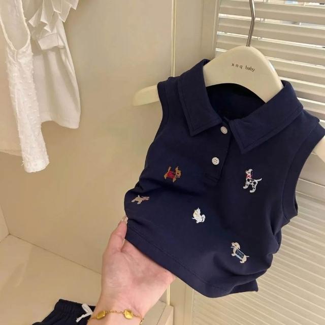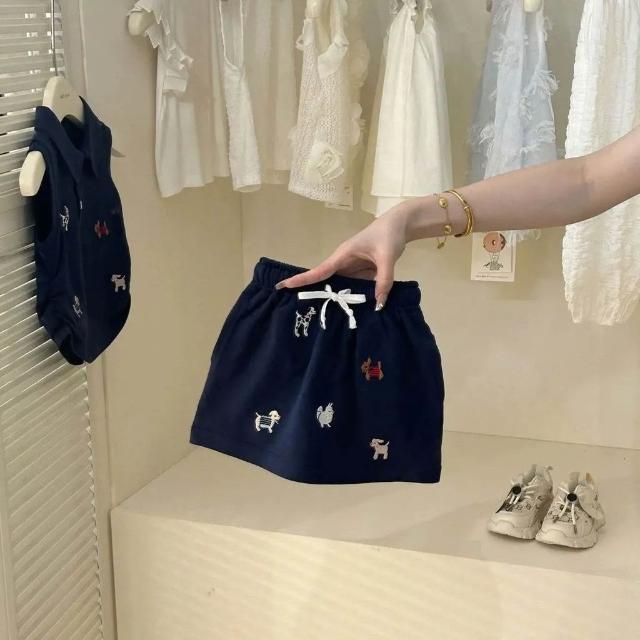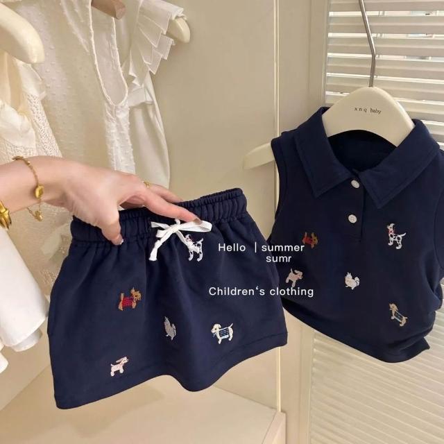 夏季新款中小兒童女孩寶寶學院風背心T恤polo衫半身短裙子兩件套