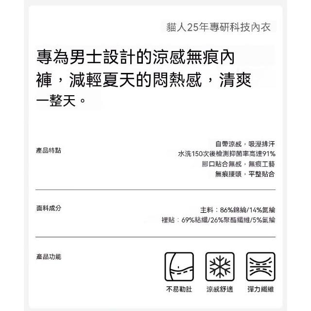貓人男士內褲2025新款冰絲涼感透氣無痕大碼平角男生抗菌四角短褲
