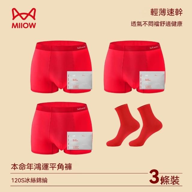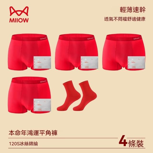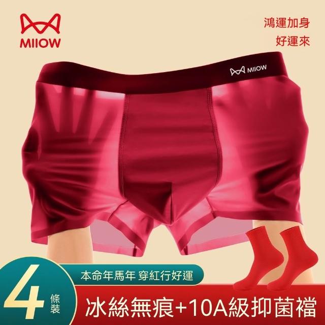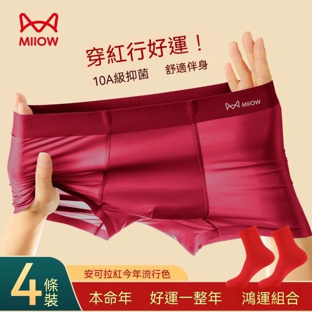 貓人【4條】大紅色男士內褲冰絲透氣本命年結婚喜慶平角四角短褲
