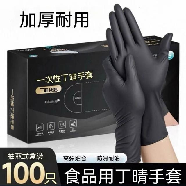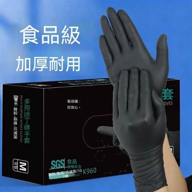 食品接觸級黑色一次性丁腈手套餐飲高彈力加厚耐用檢查家務手套