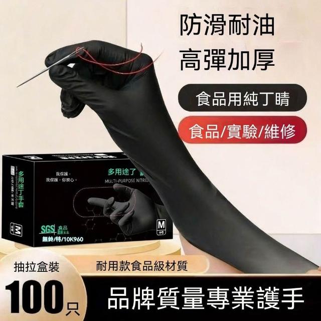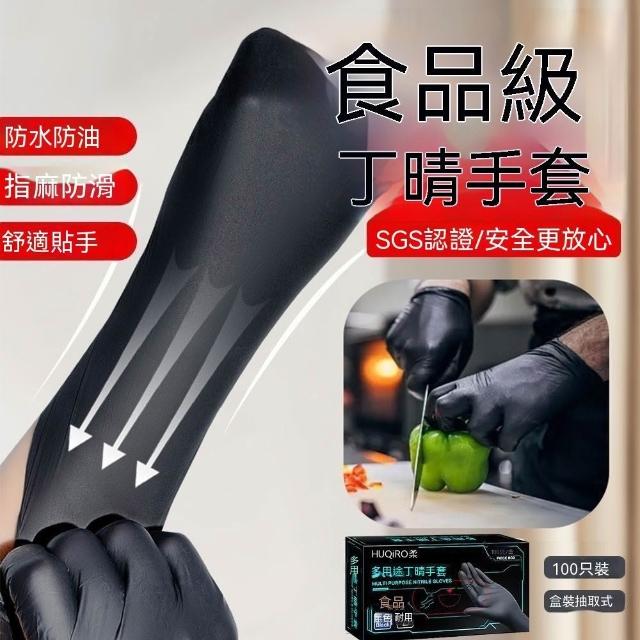 食品接觸級黑色一次性丁腈手套餐飲高彈力加厚耐用檢查家務手套