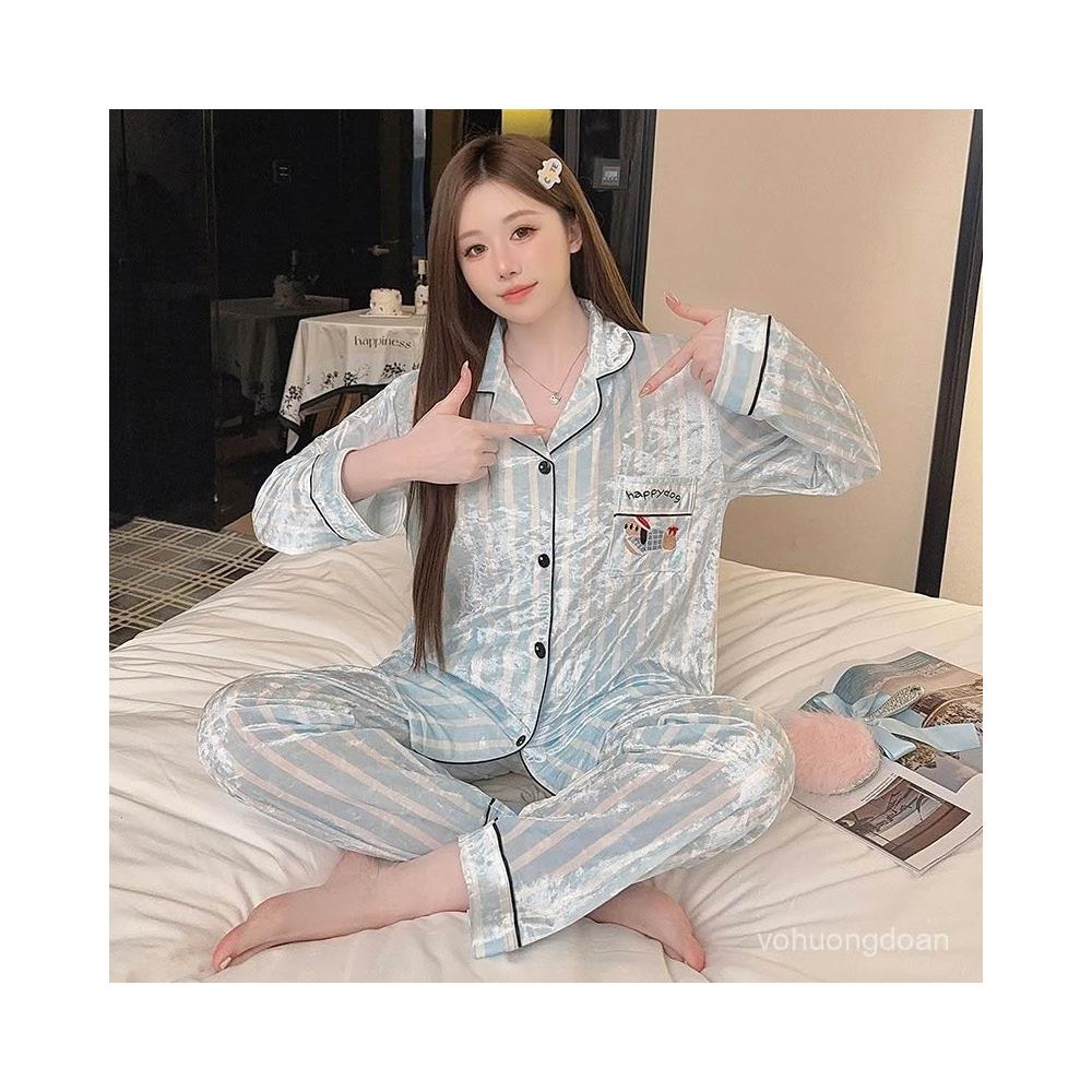 0.0秋冬長袖金絲絨睡衣女豹紋KT卡通開衫印花金鑽絨套裝
