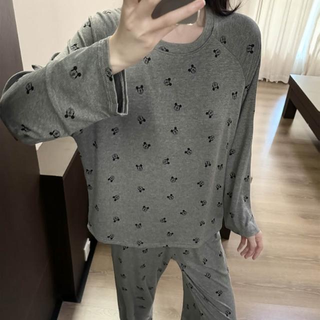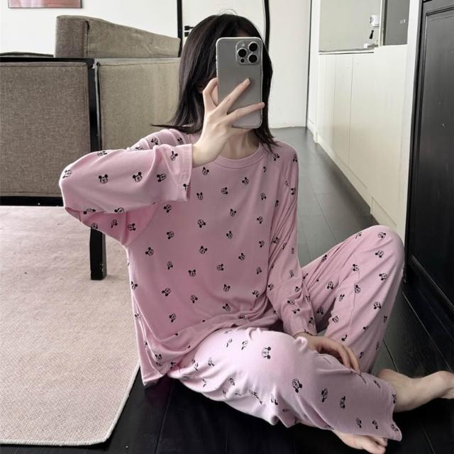粉睡衣女新款莫代爾帶胸墊卡通米奇舒適可外穿家居服套裝