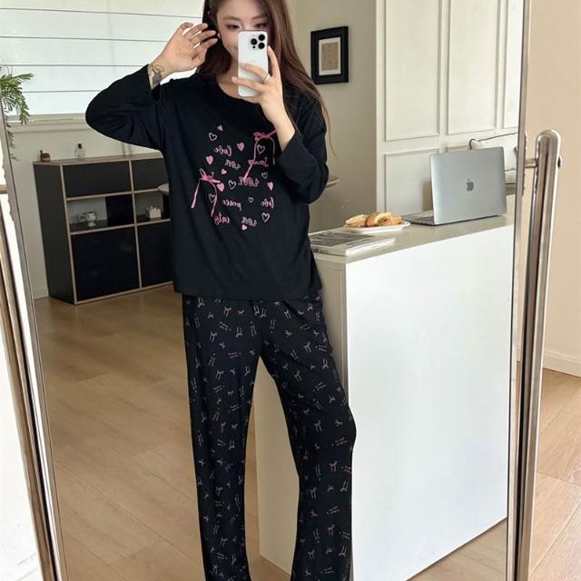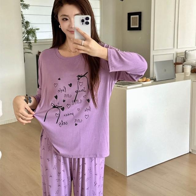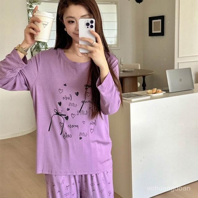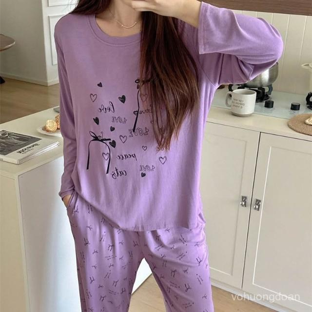 紫色帶胸墊莫代爾棉睡衣女新款秋冬季可外穿家居服套裝