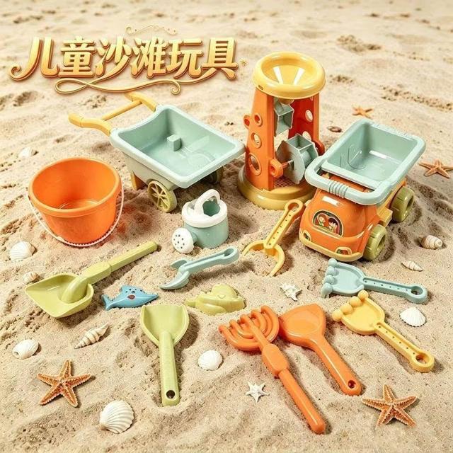 爆款寶寶沙灘玩具套裝兒童挖沙工具大口徑沙漏桶沙灘車玩沙子鏟子