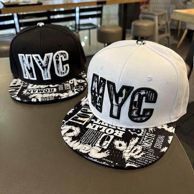 帽子男士平沿帽美式潮款春夏季黑白色板帽嘻哈帽女情侶棒球帽秋天