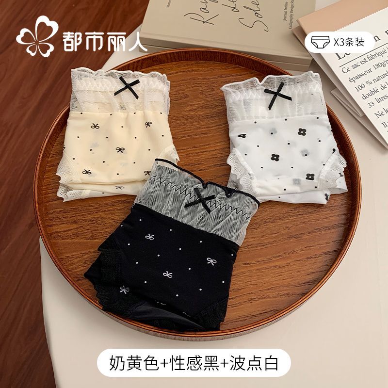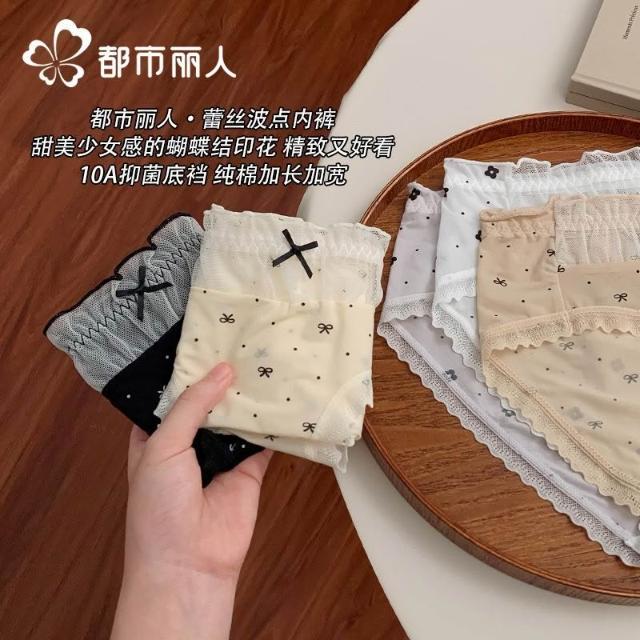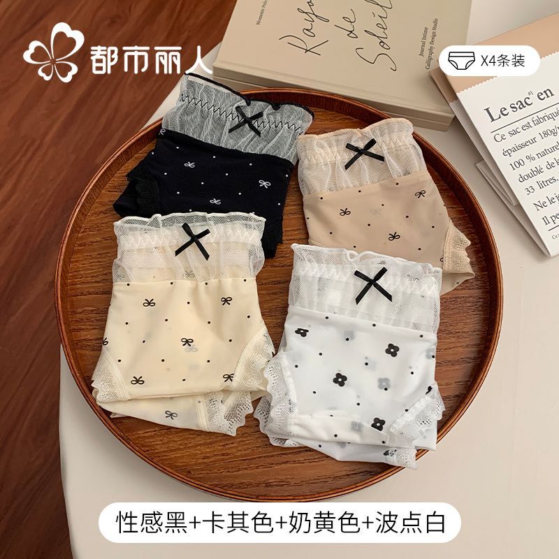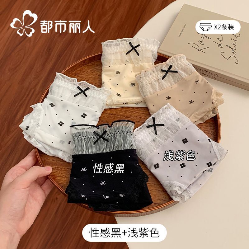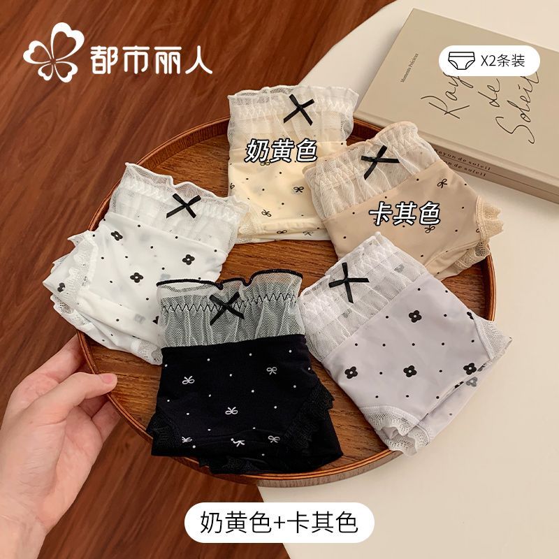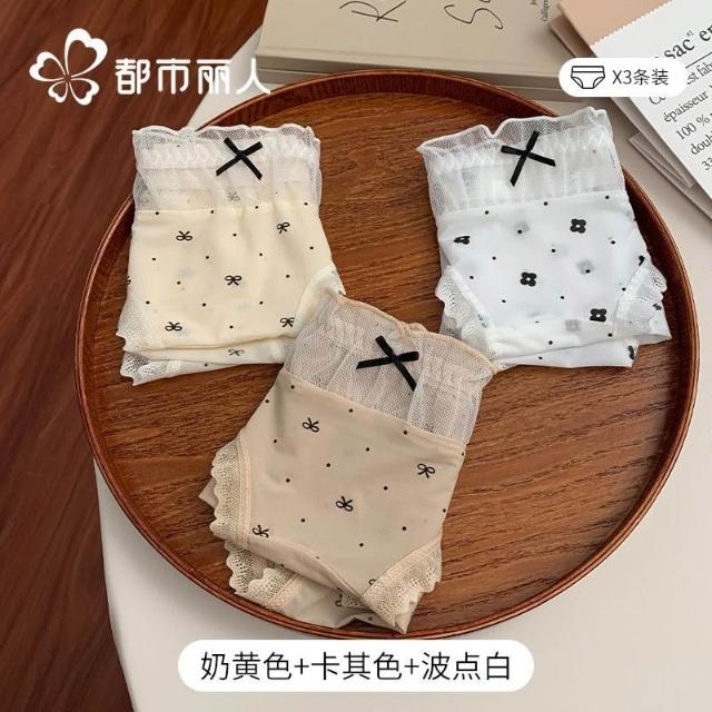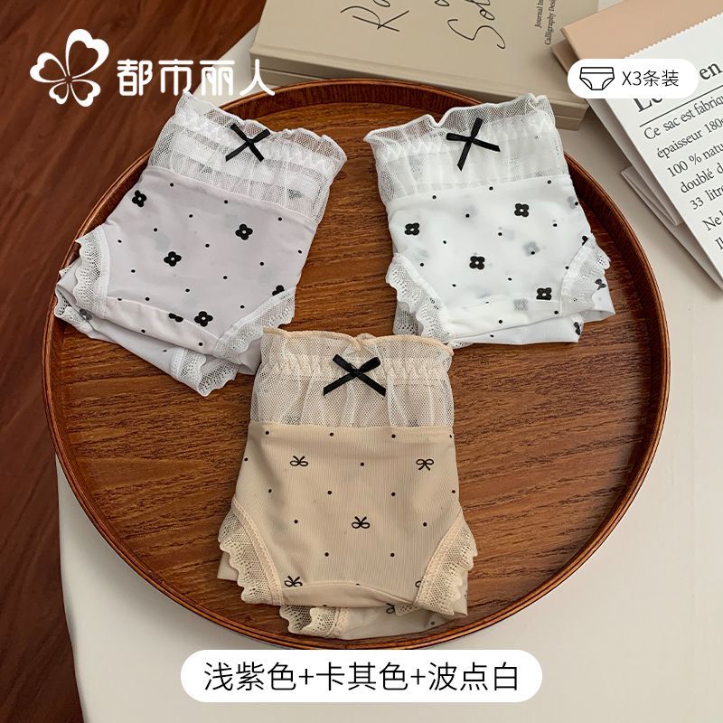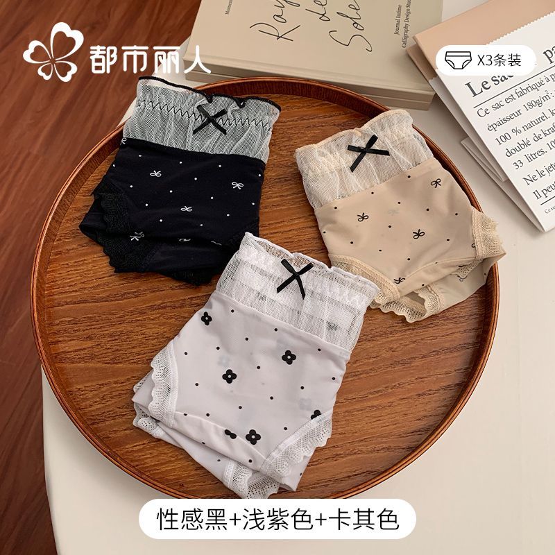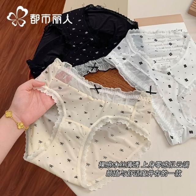 都市麗人內褲女中腰冰絲涼感甜美風花邊10A抑菌純棉襠三角內褲新