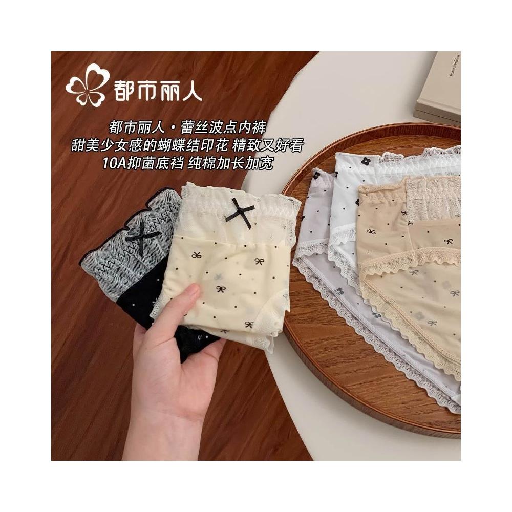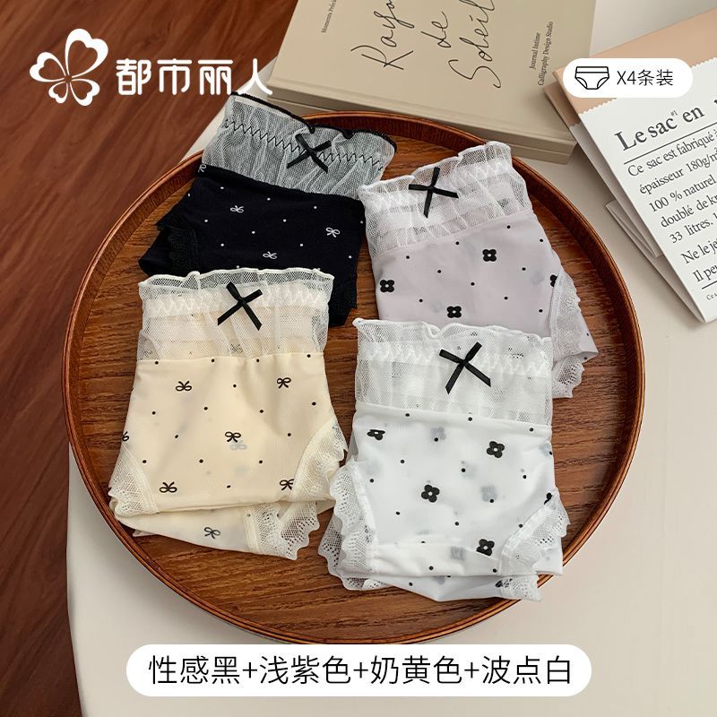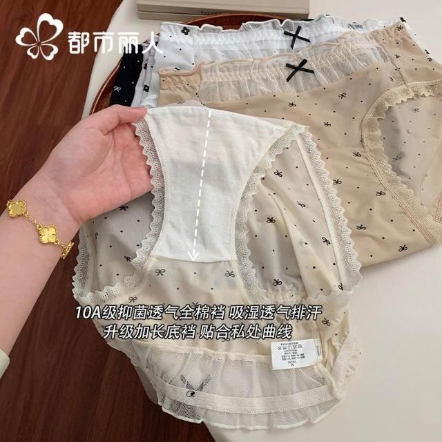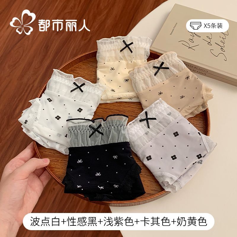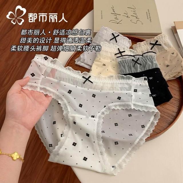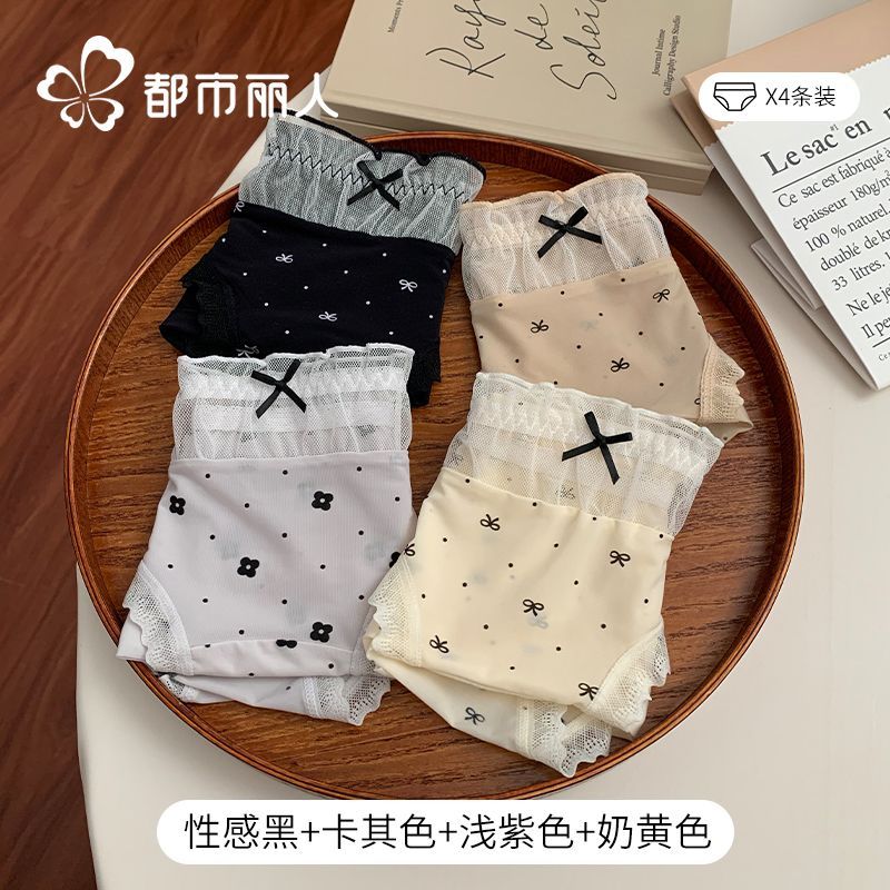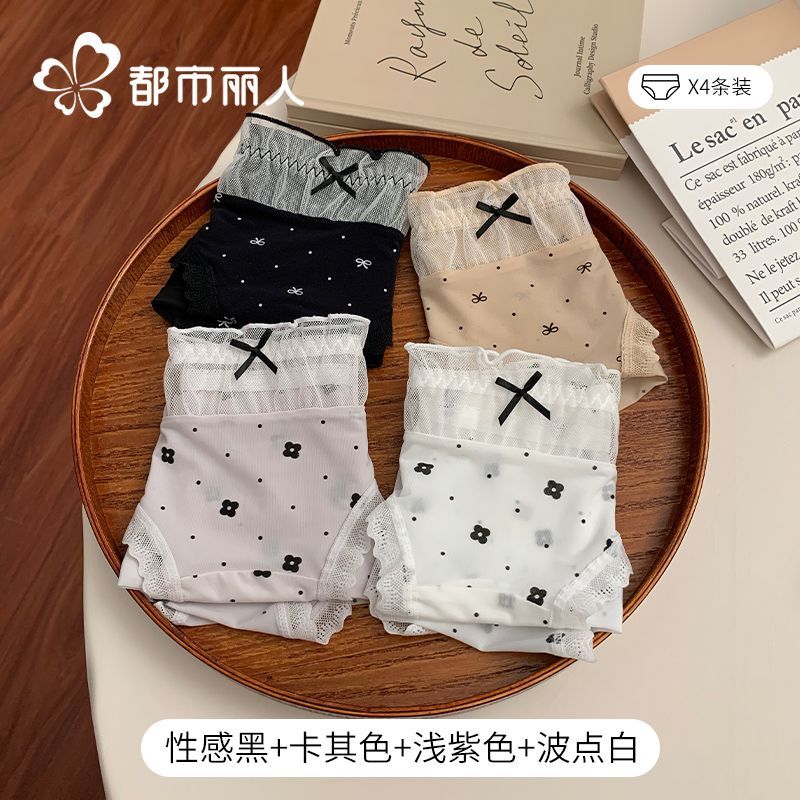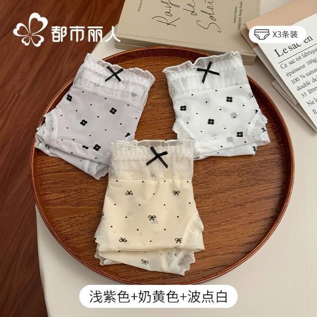都市麗人內褲女中腰冰絲涼感甜美風花邊10A抑菌純棉襠三角內褲新