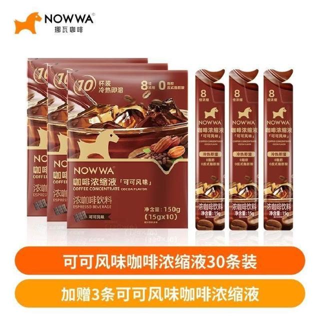 NOWWA挪瓦可可風味咖啡液裝0脂8倍濃縮液冷熱即溶濃咖啡飲料學生