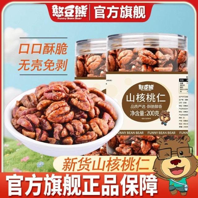 憨豆熊山核桃仁200g罐裝即食湖南新貨核桃仁無殼免剝堅果休閒零食