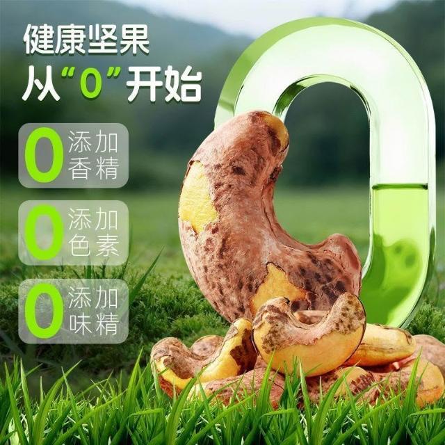 開森熊紫皮腰果仁大顆粒390g鹽焗腰果休閒零食越南堅果健康非油炸
