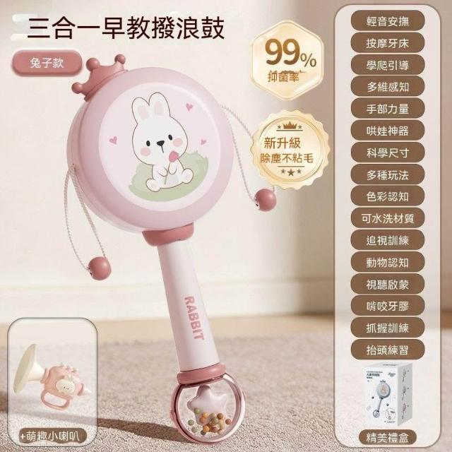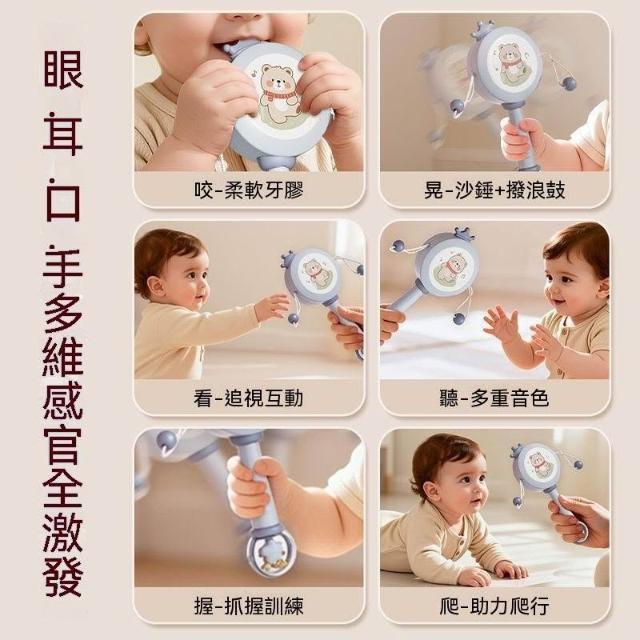 嬰幼兒撥浪鼓可啃咬新生兒8手搖鼓硅膠搖鈴益智寶寶兒童早教玩具6