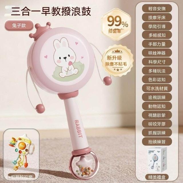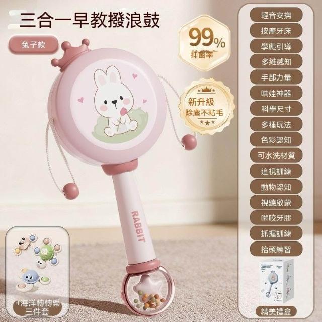 嬰幼兒撥浪鼓可啃咬新生兒8手搖鼓硅膠搖鈴益智寶寶兒童早教玩具6