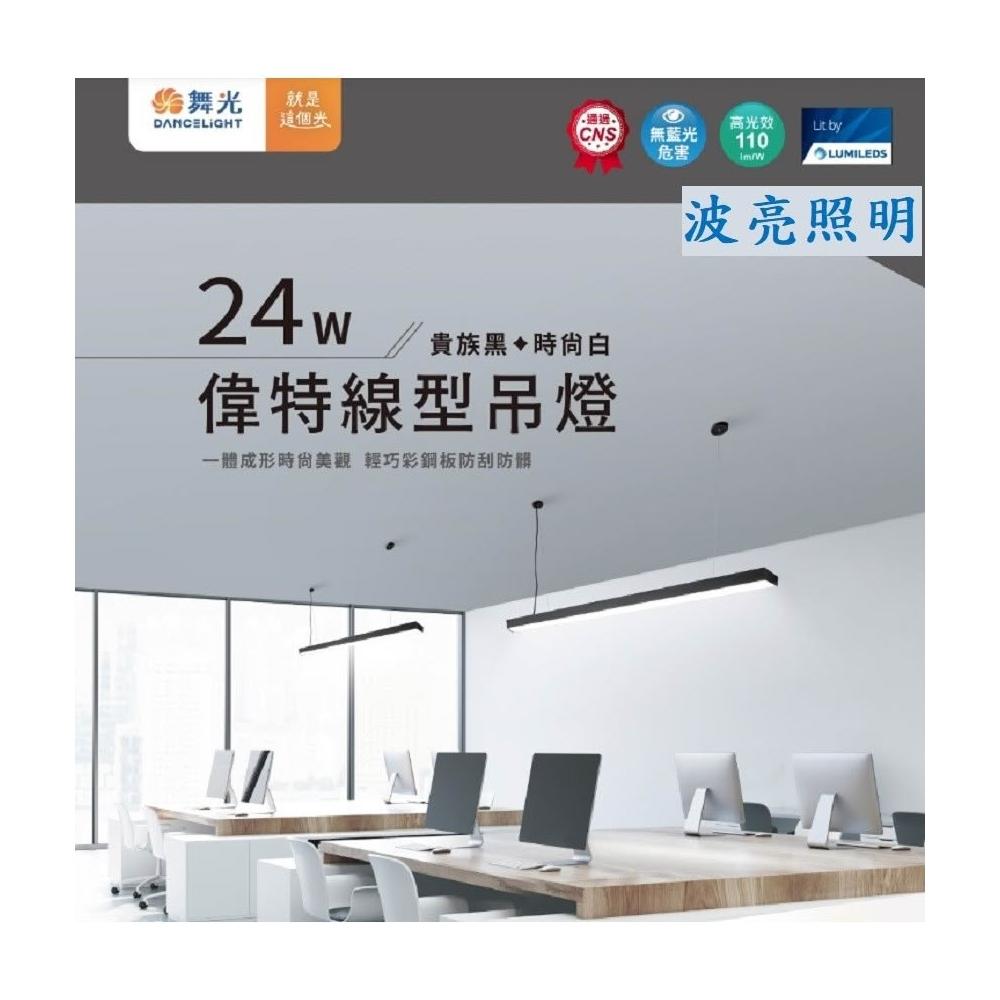 舞光 LED吊燈 24w 偉特線型吊燈 自然光4000K 貴族黑 時尚白 吊線1.5米 可調長度 防眩燈罩