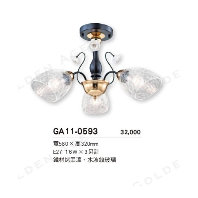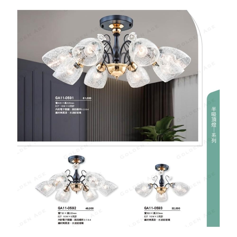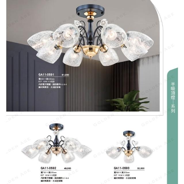 舞光 金色年代 半吸頂燈系列 GA11-0591 0592 0593 鐵材烤漆 水波紋玻璃