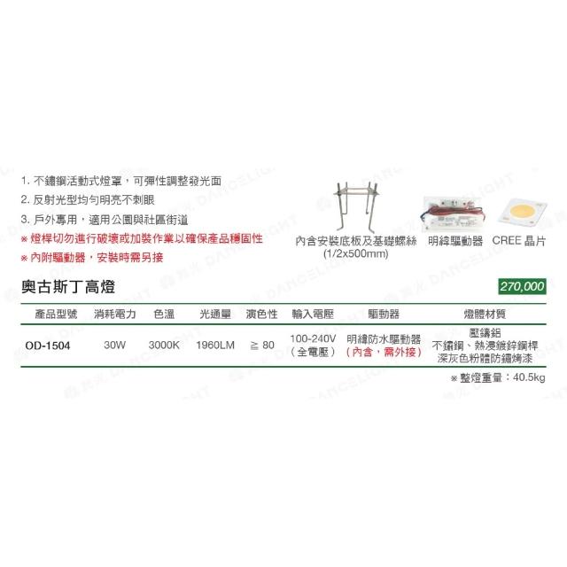 DanceLight 舞光舞光 戶外照明 奧古斯丁高燈 OD-1504 壓鑄鋁 不鏽鋼 鍍鋅鋼桿 烤漆