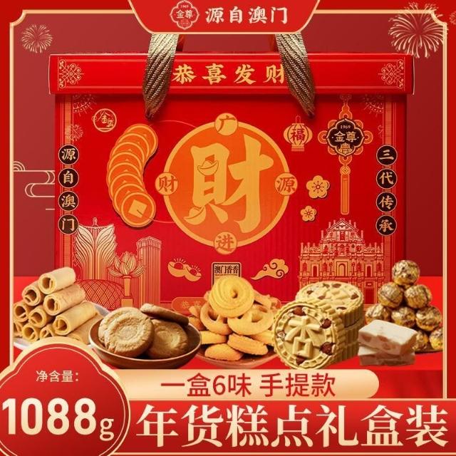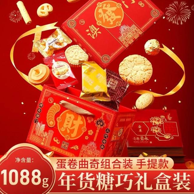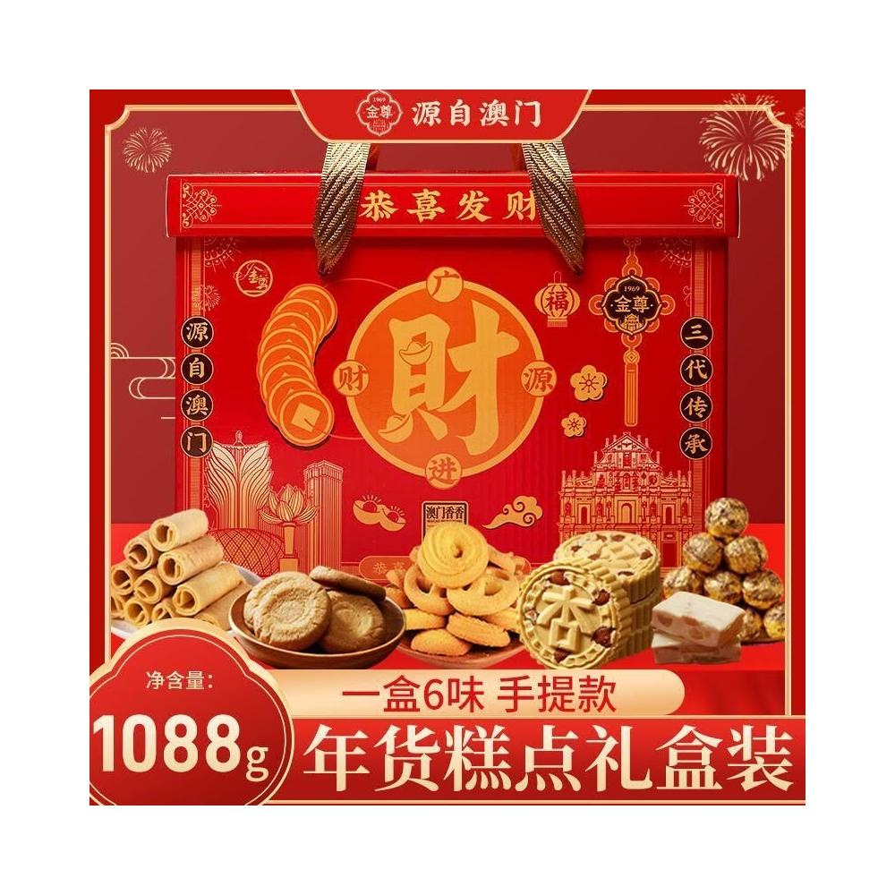 珍軒品金尊年货糕点大礼包曲奇蛋卷桃酥巧克力多口味曲奇礼盒1088g送礼