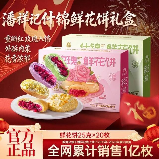 珍軒品【潘祥记】鲜花饼官方旗舰店云南鲜花饼糕点零食年货送礼玫瑰花饼礼盒