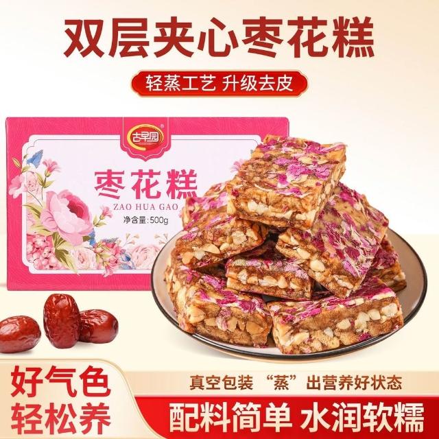珍軒品古早园枣花糕玫瑰花生枣仁派去皮红枣新品厚切糕糕点营养零食