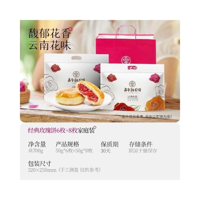 珍軒品【嘉华】鲜花饼经典玫瑰饼50g*14枚家庭装玫瑰鲜花云南糕点心零食