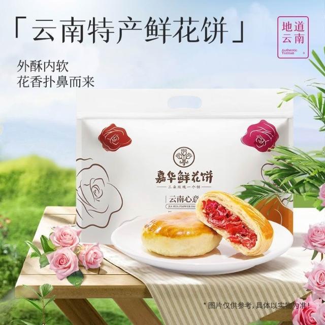 珍軒品【嘉华】鲜花饼经典玫瑰饼50g*14枚家庭装玫瑰鲜花云南糕点心零食