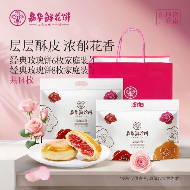 珍軒品【嘉华】鲜花饼经典玫瑰饼50g*14枚家庭装玫瑰鲜花云南糕点心零食