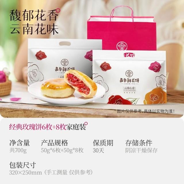 珍軒品【嘉华】鲜花饼经典玫瑰饼50g*14枚家庭装玫瑰鲜花云南糕点心零食