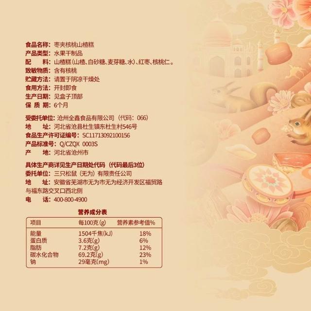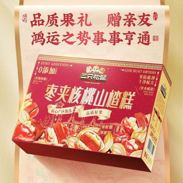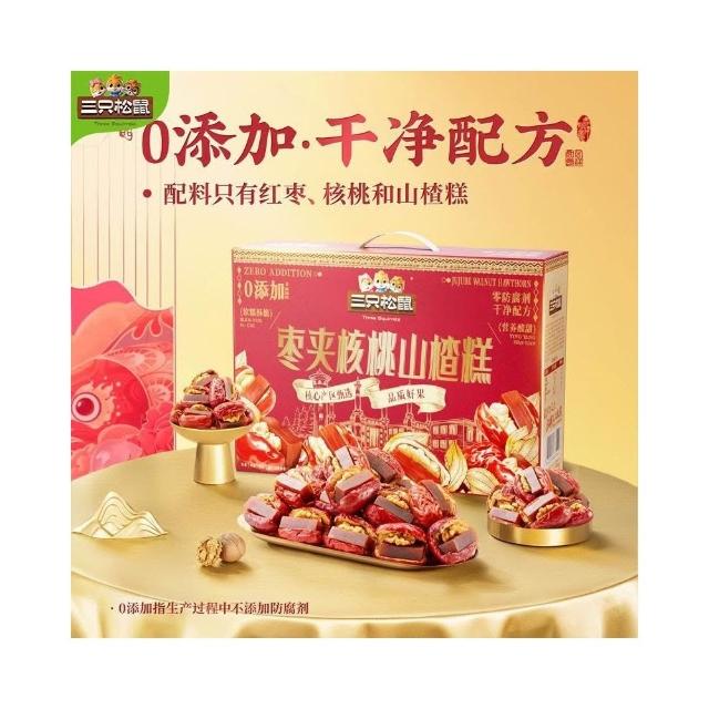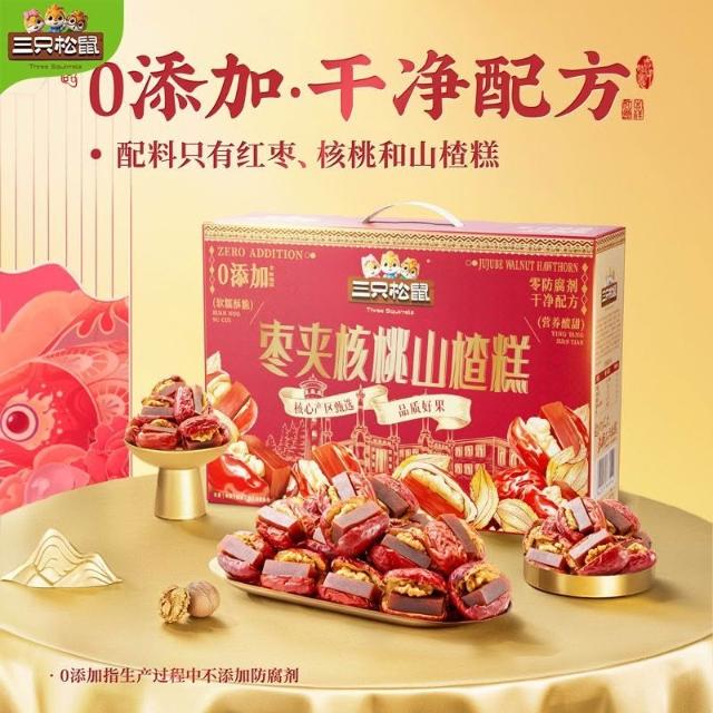 娜娜精選三隻松鼠棗夾核桃山楂糕1kg 禮盒送禮零食年貨堅果