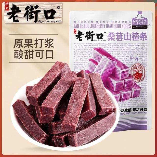 娜娜精選【老街口】桑葚味山楂條250g*3袋蜜餞果脯果乾酸甜山楂片休...